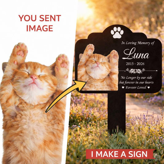 Custom Cat Memorial Stake, Cat Memorial Plaque with Photo, Cat Portrait Watercolor Cat Grave Marker, Pet Loss Gift, Pet Sympathy Gift