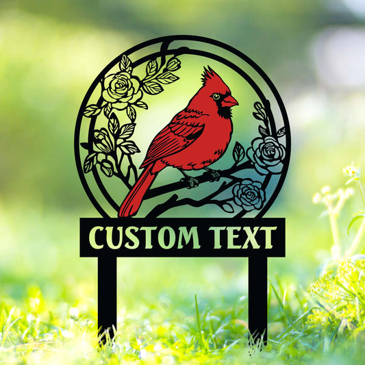 Custom Cardinals Garden Metal Sign with Stakes,Cardinal Garden Sign, Cardinal Sign, Cardinal Lover Gift Cardinal Memorial Sign, Gift for mom