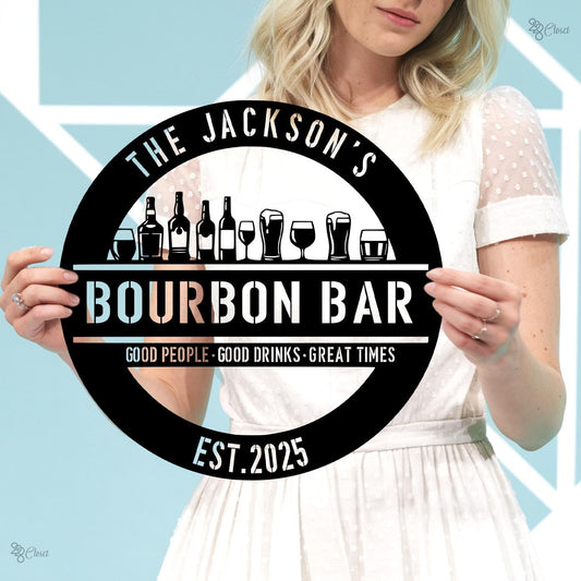 Custom Bourbon Bar Sign, Personalized Bourbon Sign, Gift for Whiskey, Bourbon Lovers, Rustic Metal Wall Decor,Home pub sign,Whiskey bar sign